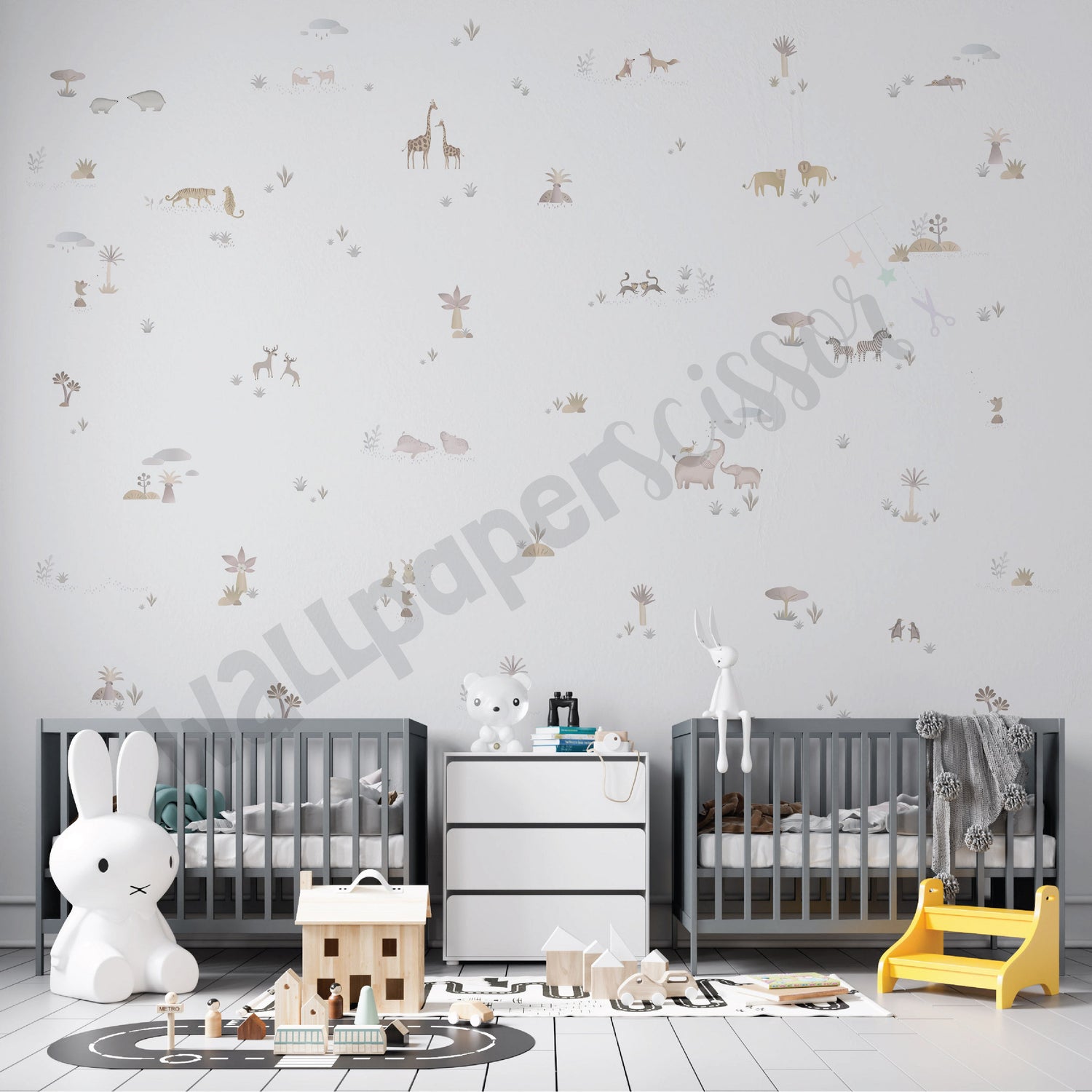 A sample will include a 12in x12in actual scale swatch of this wallpaper along with a 12in x 12in scaled down version of the full design.