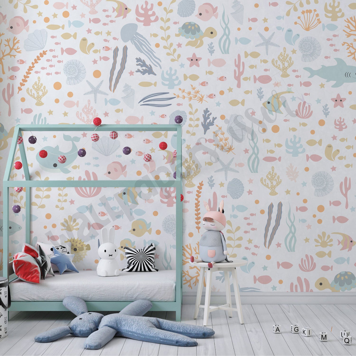 A sample will include a 12in x12in actual scale swatch of this wallpaper along with a 12in x 12in scaled down version of the full design.