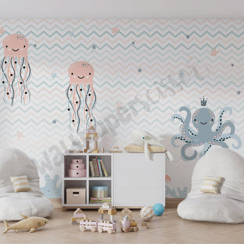 A sample will include a 12in x12in actual scale swatch of this wallpaper along with a 12in x 12in scaled down version of the full design.
