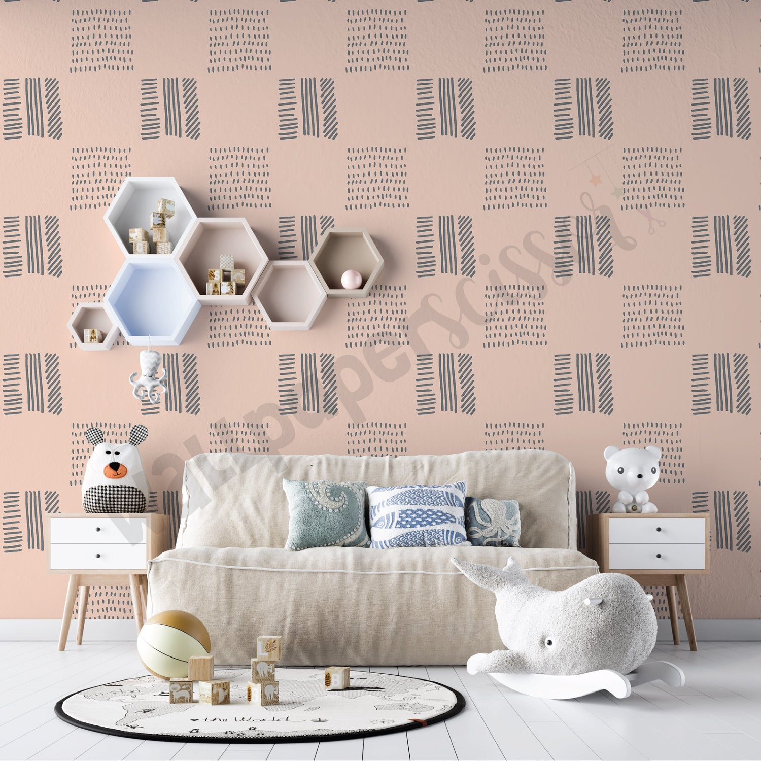 A sample will include a 12in x12in actual scale swatch of this wallpaper along with a 12in x 12in scaled down version of the full design.
